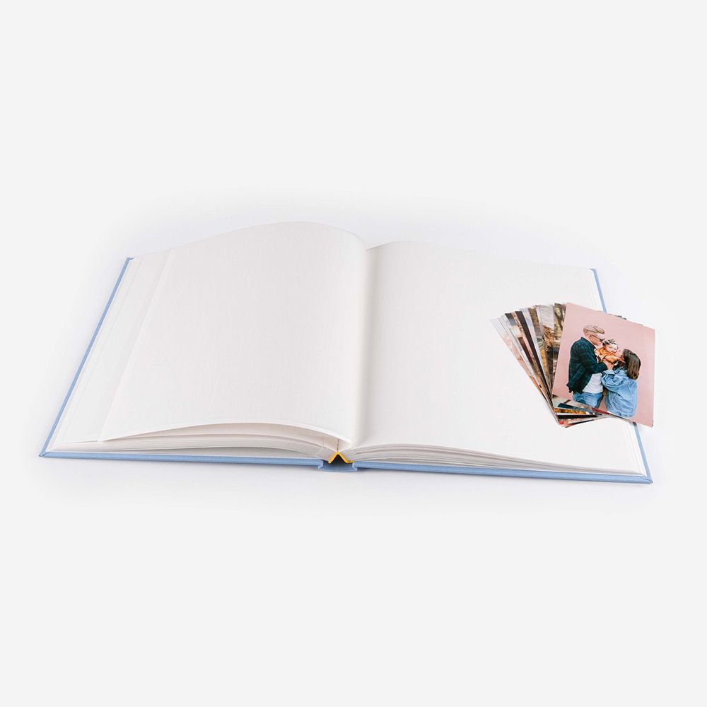 Os Álbuns Analógicos em Linho com janela possuem generosas dimensões de 30x31cm, proporcionando um espaço amplo para organizar e preservar as tuas memórias de forma elegante e sofisticada.