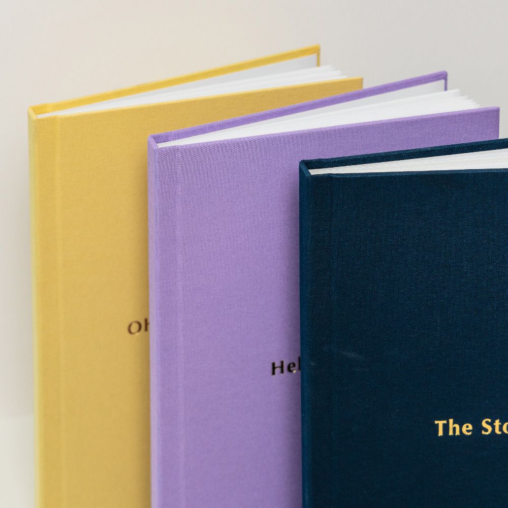 No modelo Inscription, a capa ganha uma assinatura própria. A técnica de stamping grava nomes, datas ou pequenas frases diretamente no tecido, criando um relevo subtil e elegante que transforma o álbum num objeto ainda mais ligado à história que guarda.
