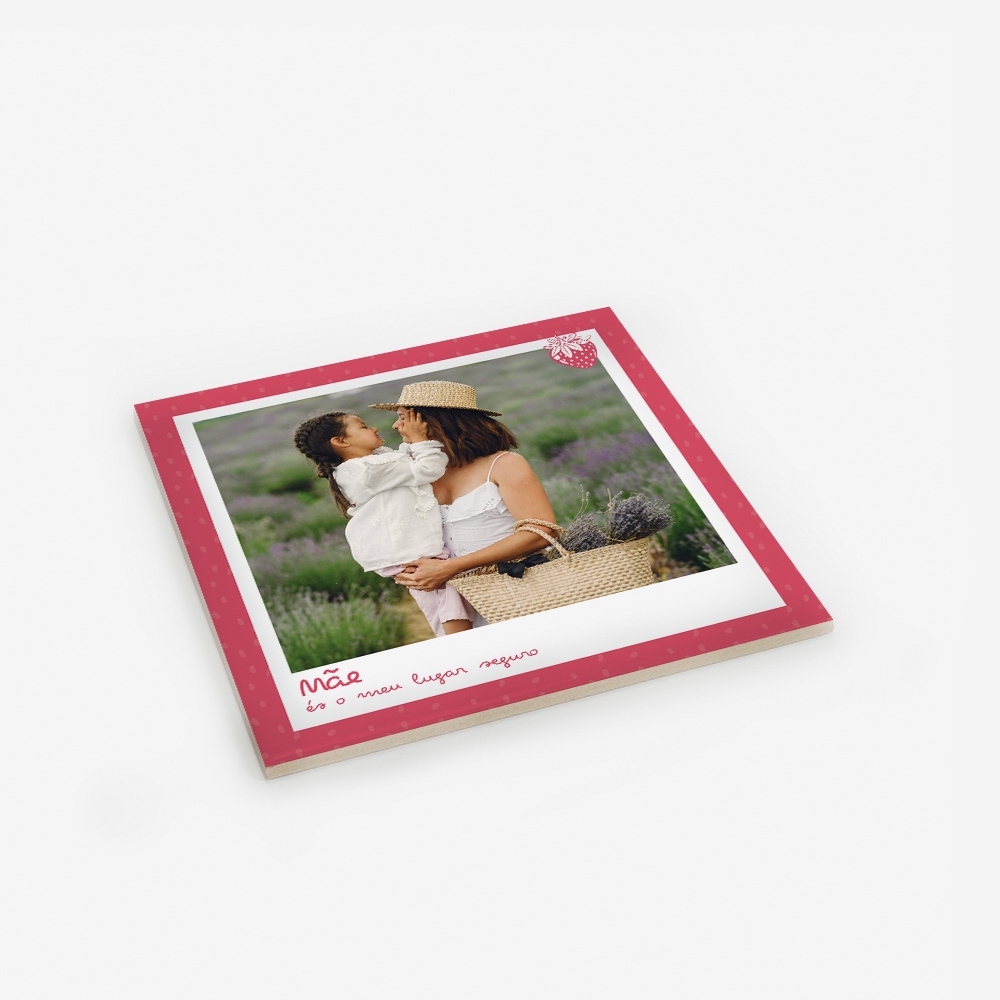 Com dimensões de 15 x 15 cm, tens 100% da área para personalizar. É a tela perfeita para expressares a tua criatividade, seja com fotografias ou textos que te representem.