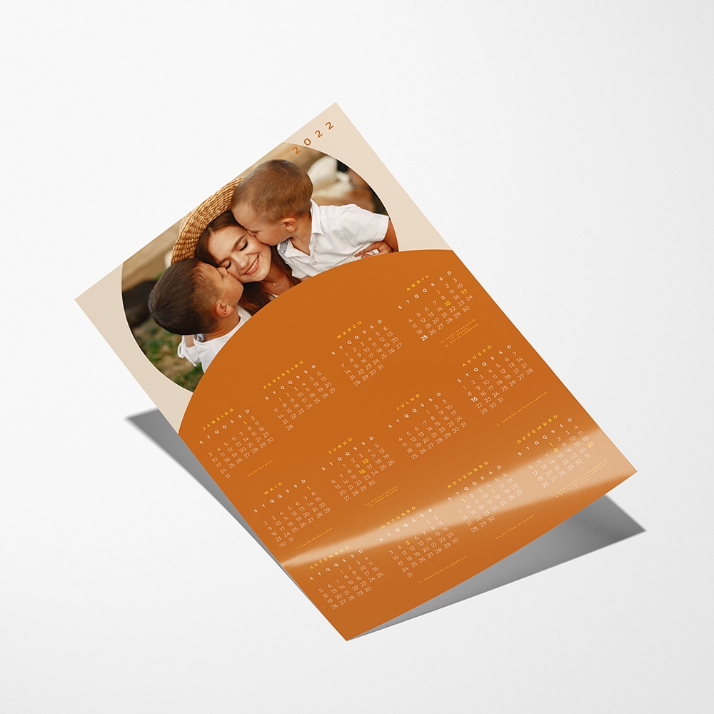Os Calendários são impressos em papel couché de alta qualidade, com um acabamento em matte. Este tipo de impressão irá proporcionar uma imagem nítida com cores vivas e intensas, o que confere ao teu calendário uma maior durabilidade.