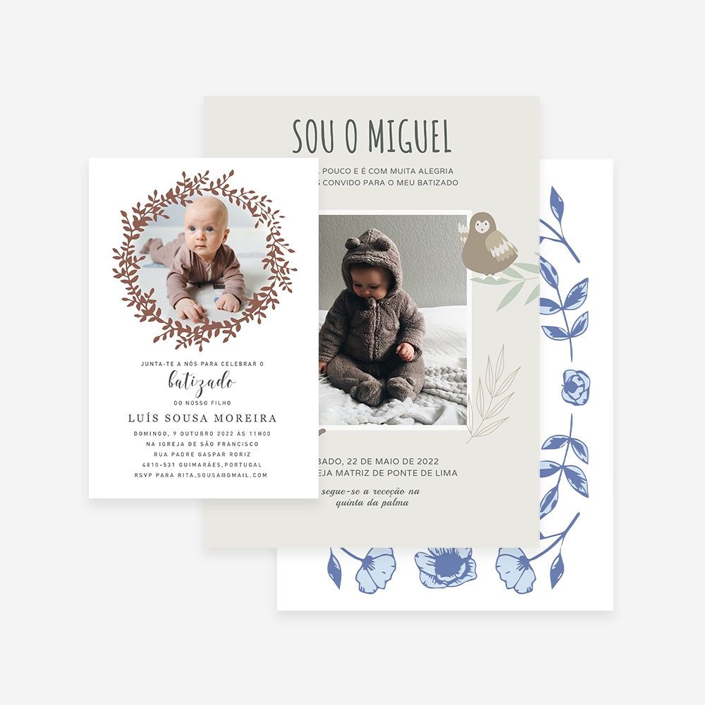 O Batizado é uma das datas mais especiais do crescimento dos filhos e, por isso, é motivo para celebrar com a família e amigos mais próximos. Nestas celebrações todos os detalhes contam, por isso criamos modelos personalizáveis para os convites de batizado. Cria convites de qualidade online com a opção de adicionar um envelope colorido e fechar com lacre.